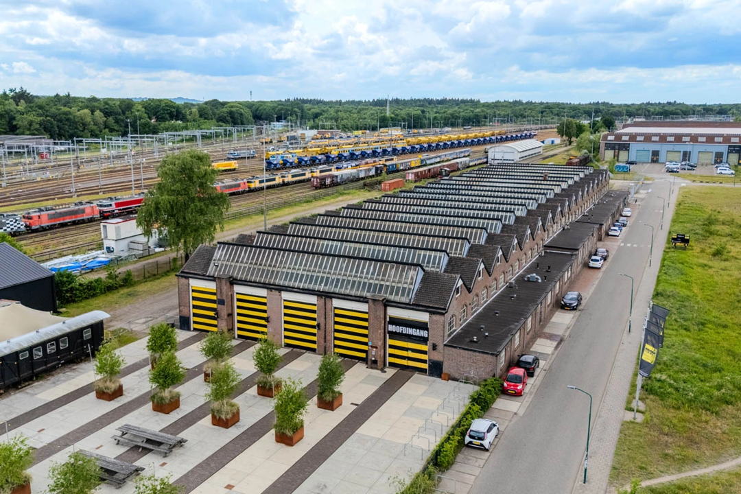 De Rijtuigenloods is a unique industrial event venue in Amersfoort, Netherlands, housed in a historic railway maintenance building that is now a national monument. With over 100 years of railway history, the venue offers 3,300 m² of authentic industrial space featuring raw steel, original railway sleepers, and historic train wagon